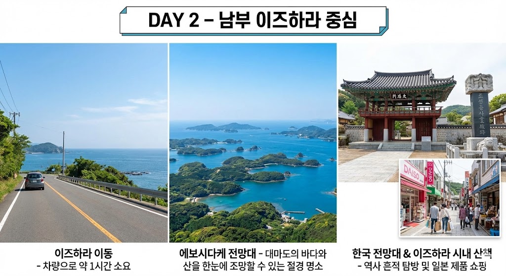 이처럼 대마도 여행 1박2일 일정은 아침에 출발해 다음 날 오후에 돌아오는 구조로, 시간 대비 효율이 높습니다.