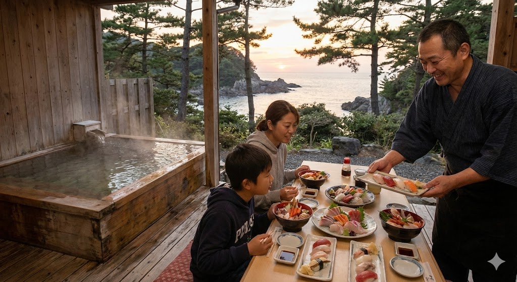 - 료칸 스타일 숙소: 전통 일본식 분위기, 온천 제공