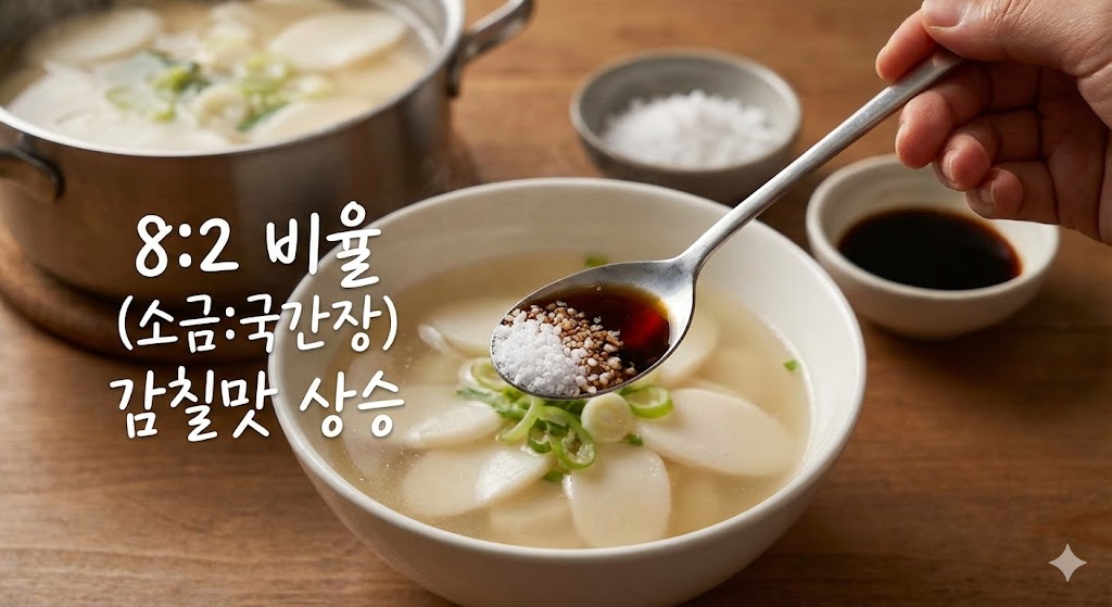 떡국 맛있게 끓이는 법에서 간은 소금으로 맞추는 것이 원칙입니다.