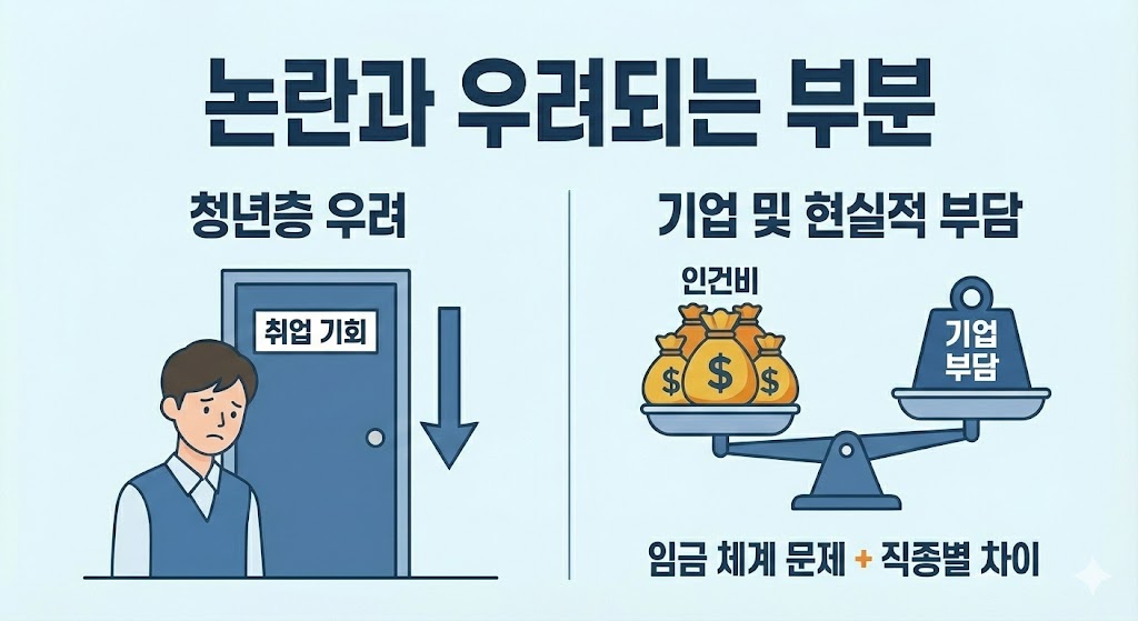 - 직종별로 근로 강도가 달라 일괄 상향이 현실적이지 않다는 의견도 존재합니다.